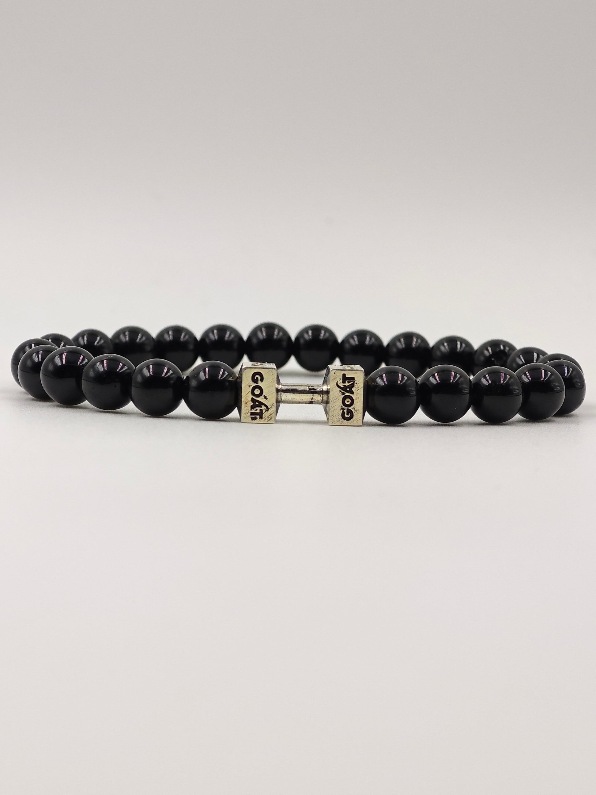 BLACK OBSIDINA BEADED BAND WITH SILVER G.O.A.T SIGNATURE DUMBLE CLASP