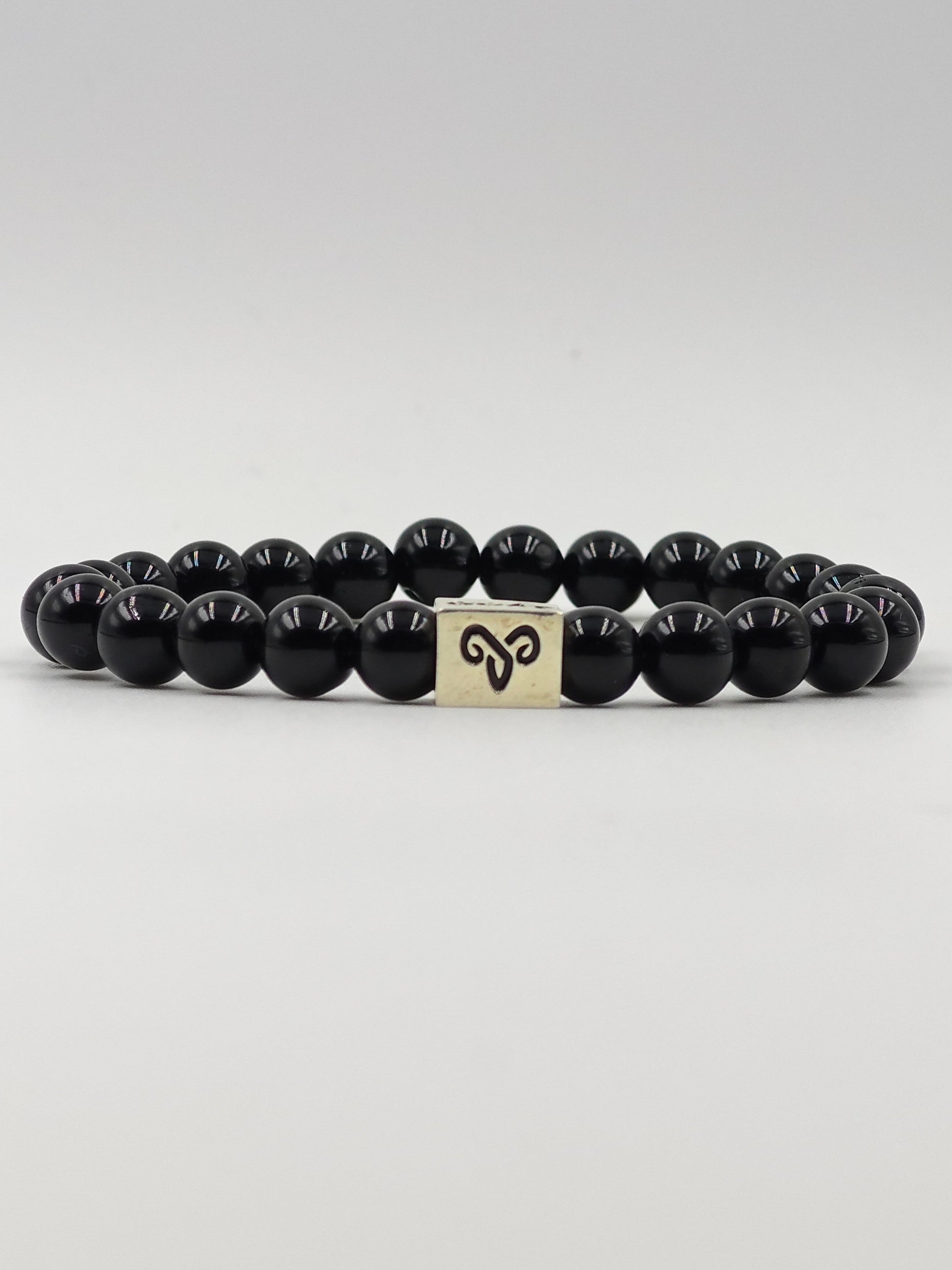 BLACK OBSIDIAN BEADED BAND WITH SILVER G.O.A.T SIGNATURE RECTANGLE DRUM CLASP