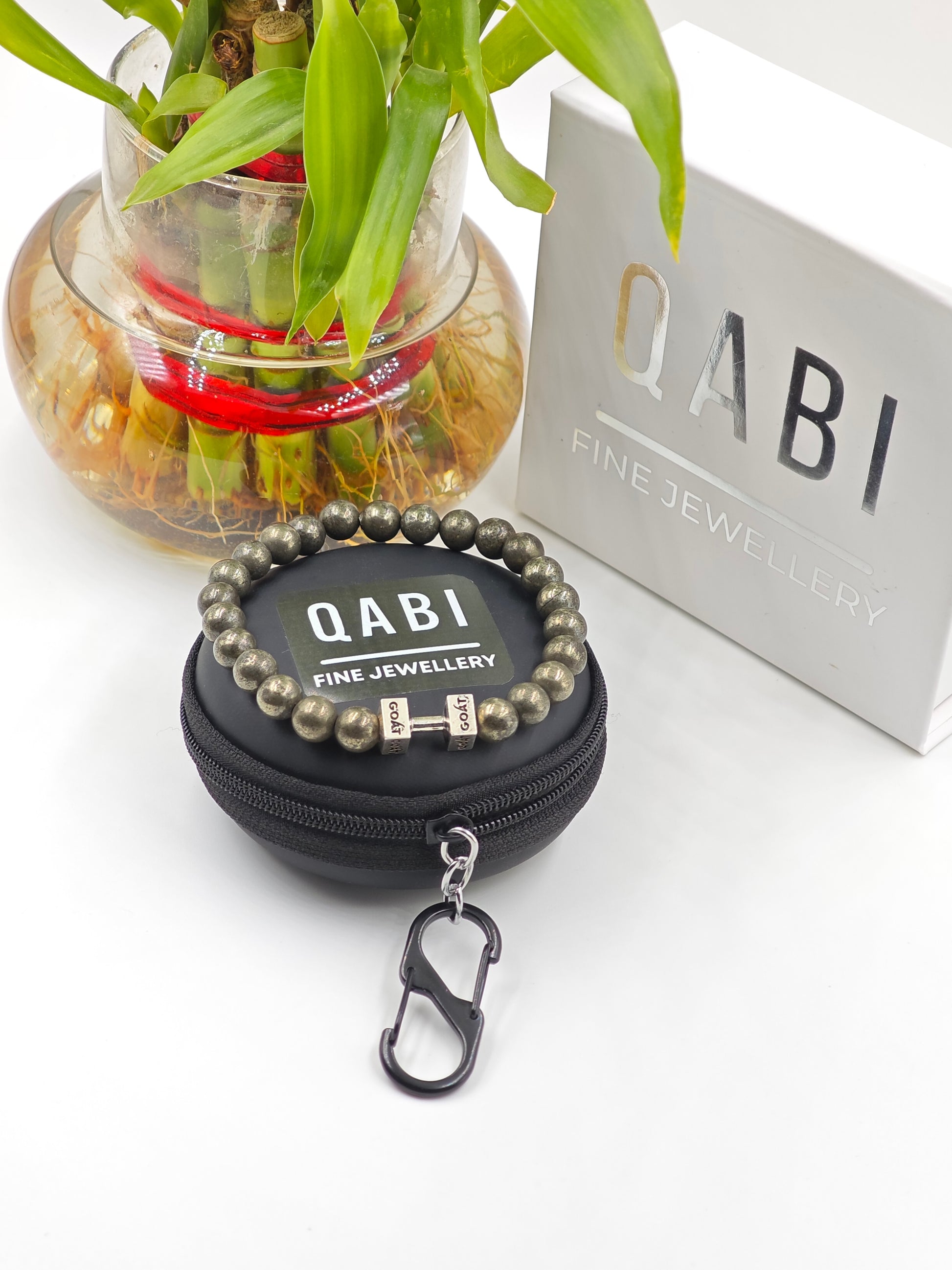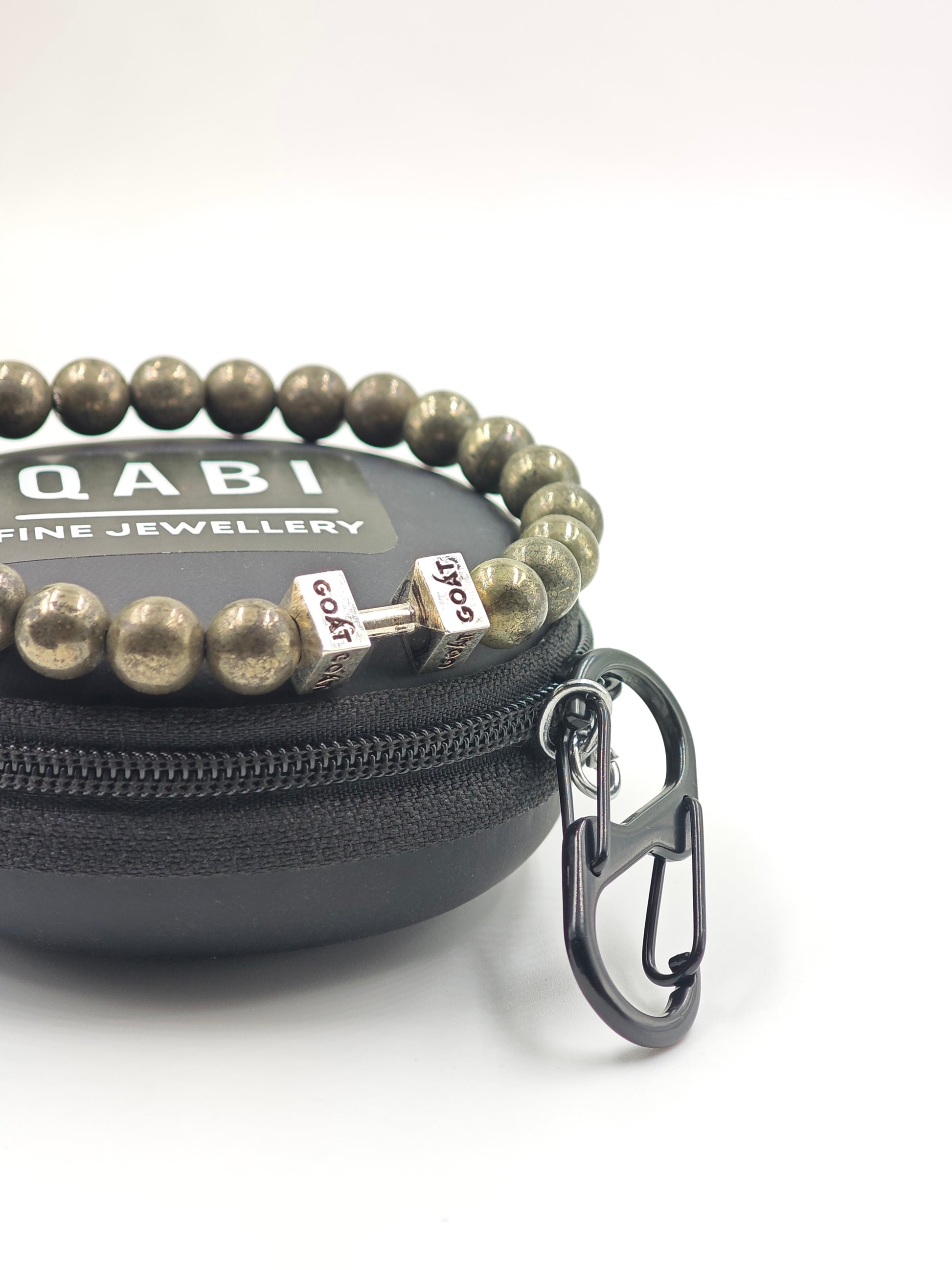 PYRITE STONE BEADED BAND WITH SILVER G.O.A.T SIGNATURE DUMBLE CLASP