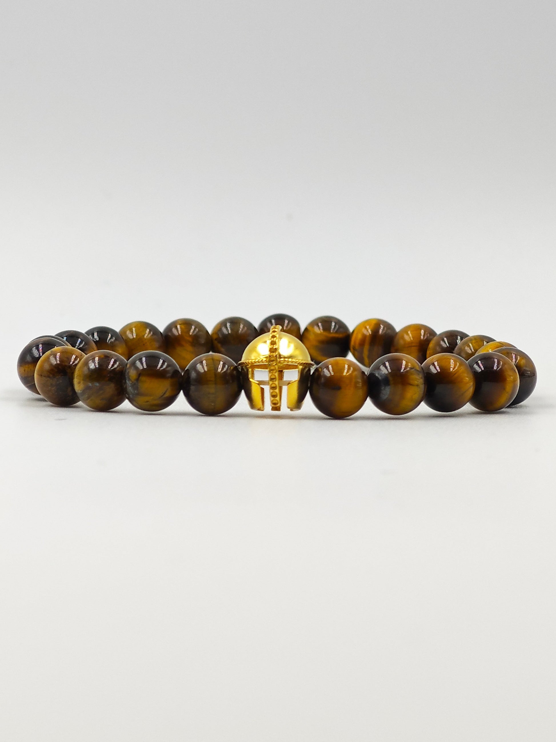 YELLOW TIGER EYE BEADED BAND WITH SILVER WARRIRO CAP CLASP GOLD PLATTED