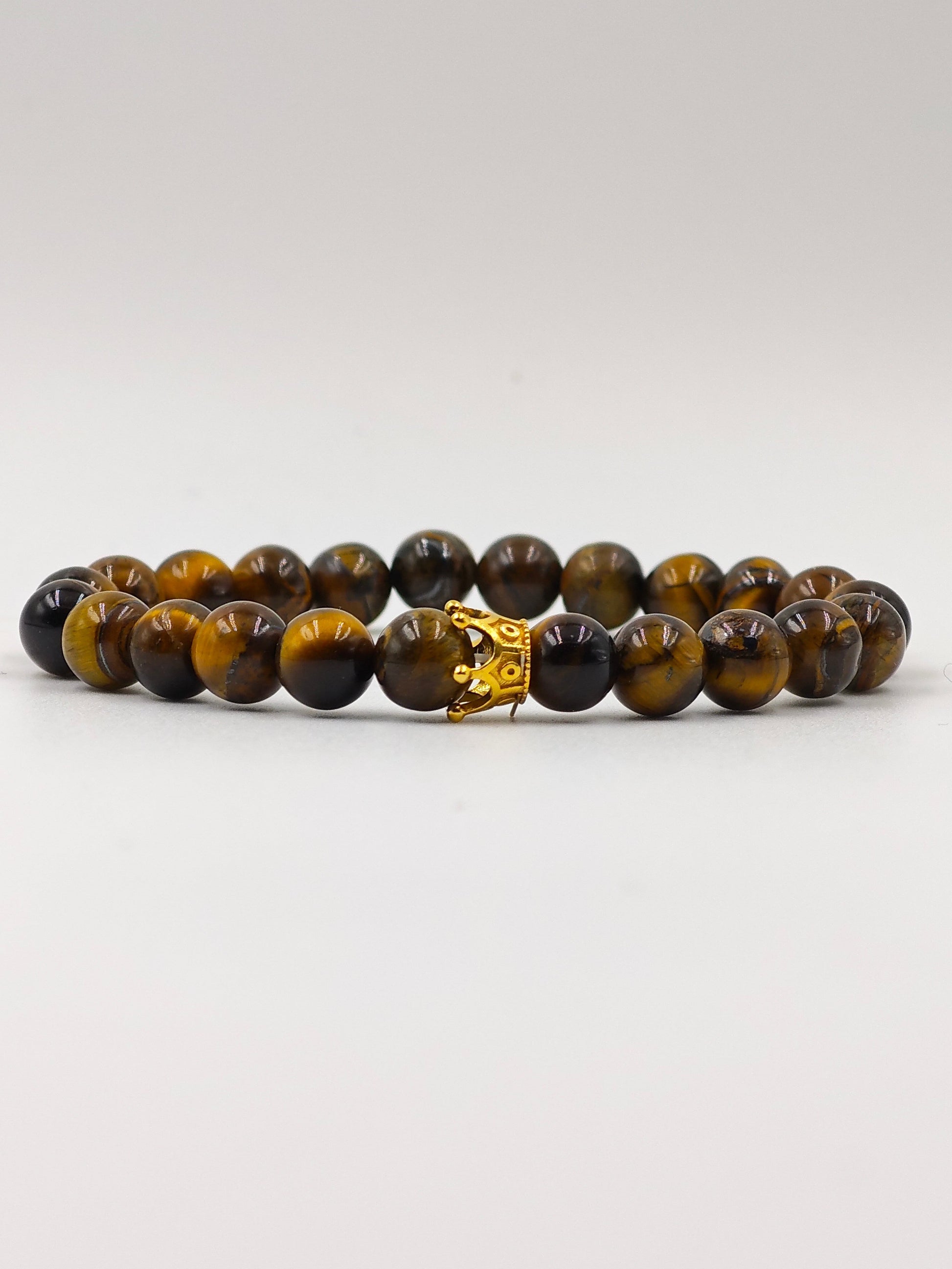 YELLOW TIGER EYE BEADED BAND WITH SILVER CROWN CLASP GOLD PLATTED