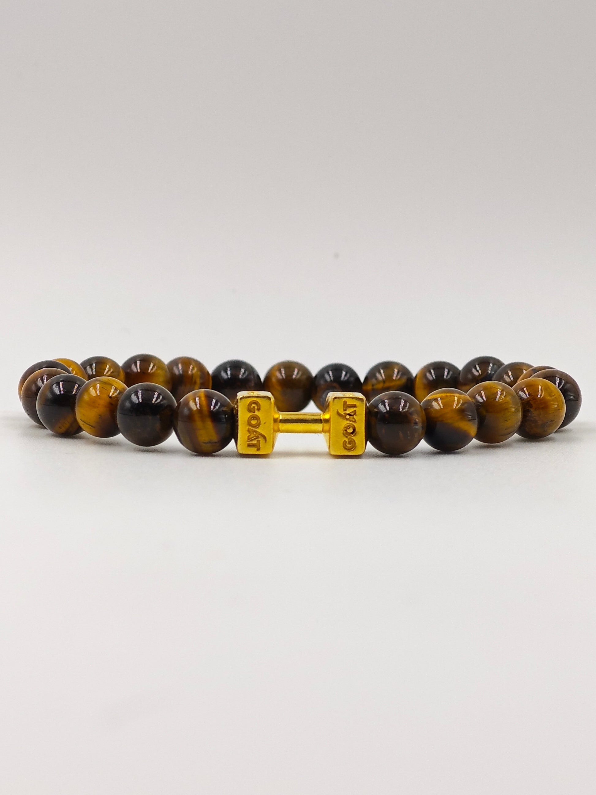 YELLOW TIGER EYE BEADED BAND WITH SILVER G.O.A.T. SIGNATURE DUMBLE GOLD PLATTED